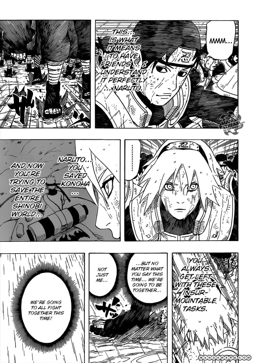 memory of Sasuke, the 12/13 year old comrade that thanked her for expressing care for him. It is not easy to reconcile and accept that someone you were so sure that you loved has changed like that. Which is why 540 is so significant, because she has finally gotten through her head that Sasuke is a different person now. It showed a huge difference in her perception of him, and will most likely be the first step in her finally letting go of whatever romantic feelings she has left for him.