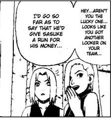 SaiIno in this context disgusts me. The only way SaiIno works is if NS happens. As it is, SaiIno shows that Ino is just as disgusting and shallow a person as Sakura, and I genuinely feel sorry for Sai.